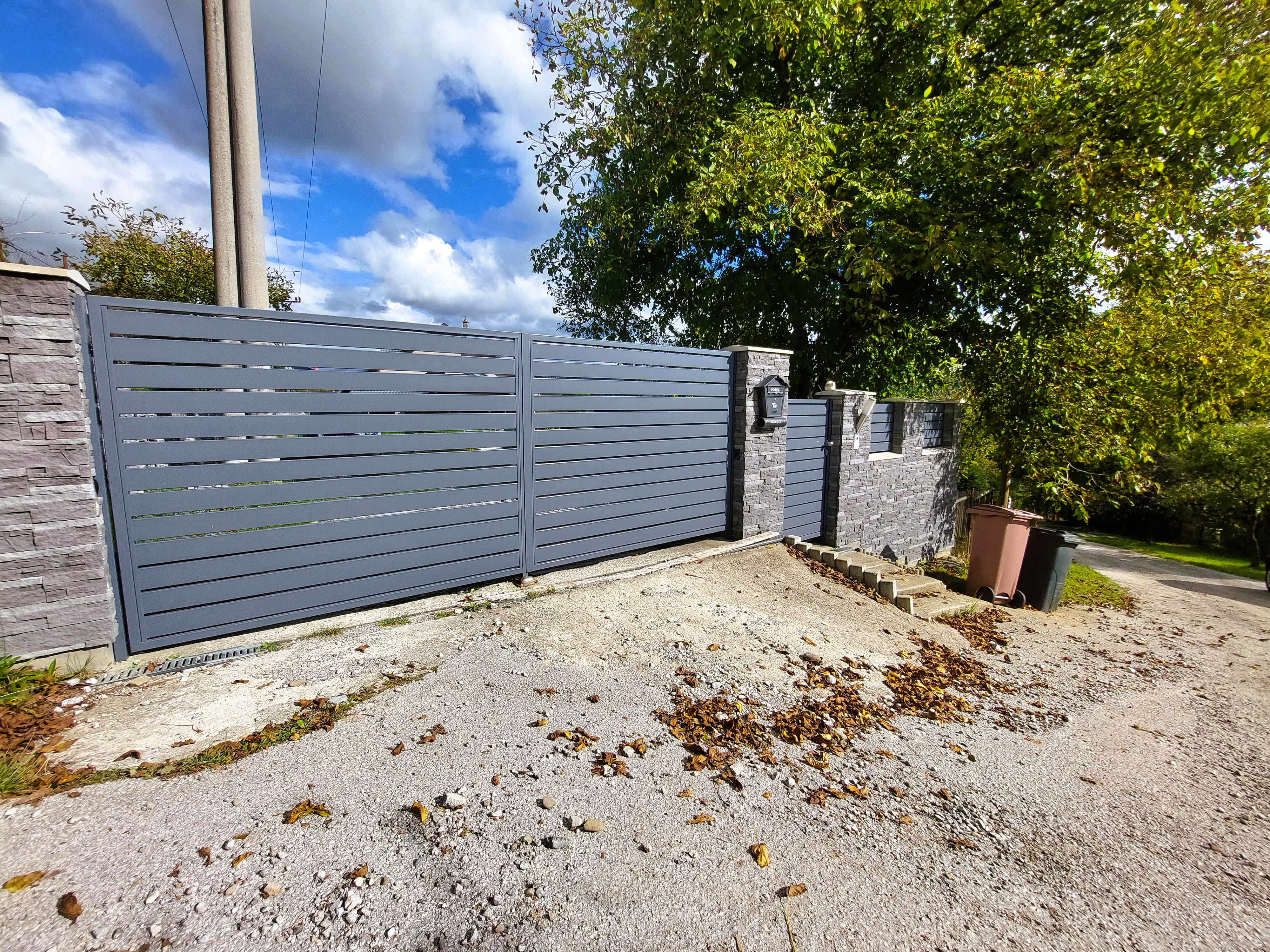 Takmer rovinatý pozemok o výmere 1.032 mje ohraničený oplotením. Vstup do domu je prístupný z dvoch strán, pričom jedna časť vedie od hlavnej elektricky otváravej brány so vstupom pre vozidlá a druhá od spodnej ulice pre peší vstup. V hlavnej časti pozemku sú umiestnené trávnaté plochy s drevitými rastlinami.