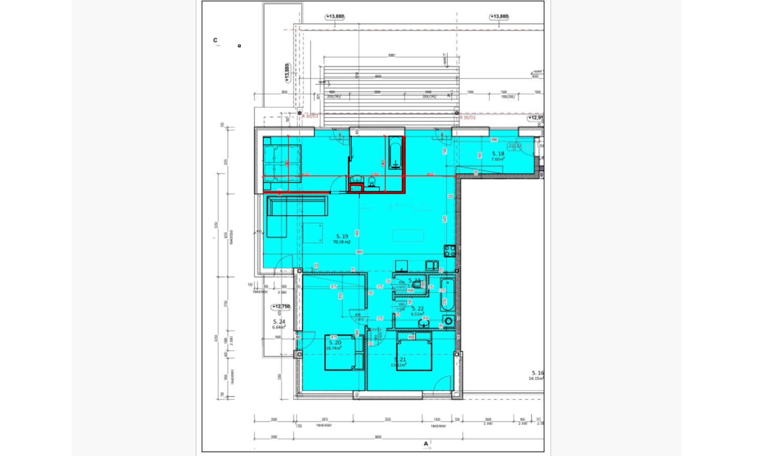 Veľkorysá obývacia izba s kuchyňou a jedálňou /až 50,35 m²/, priestranná spálňa /18,74 m²/, dve detské izby /13,52 m² a 12,10 m²/ – variabilné ako pracovňa či hosťovská izba. Kúpeľňa v dennej časti /7,73 m²/, druhá kúpeľňa v nočnej časti /6,51 m²/, samostatná toaleta, vstupná chodba. Loggia so vstupom z obývačky, balkón prístupný z obývačky aj spálne. Kobka /3,65 m²/ na rovnakom podlaží.
