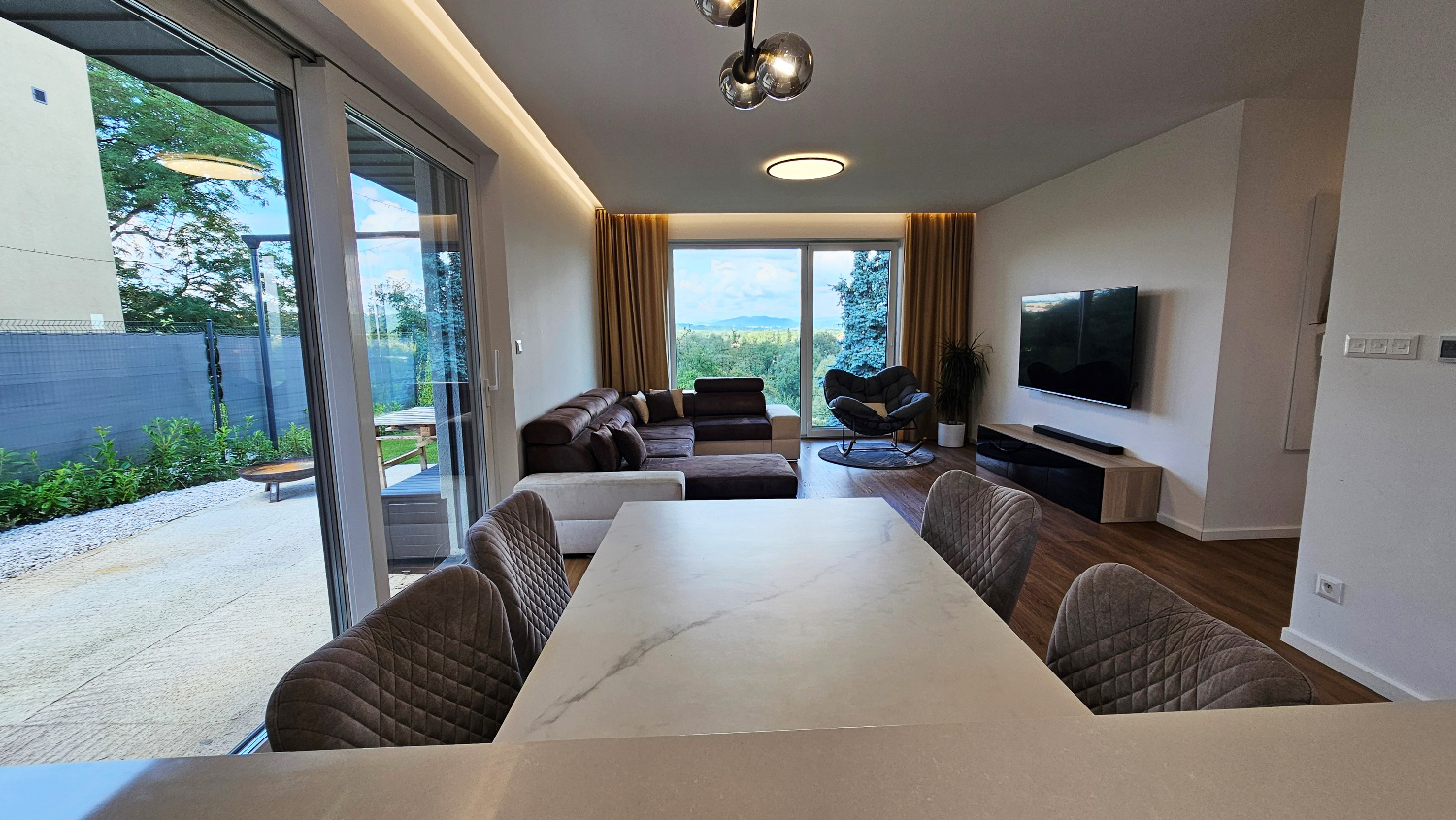 Nadčasová farebnosť interiéru. Kuchyňa Franke a Whirlpool. Podlahové kúrenie riadené termostatmi v každej miestnosti. Exteriérové žalúzie. Kamerový systém pre váš pokoj. Kvalita, ktorú oceníte, až keď ju máte.
