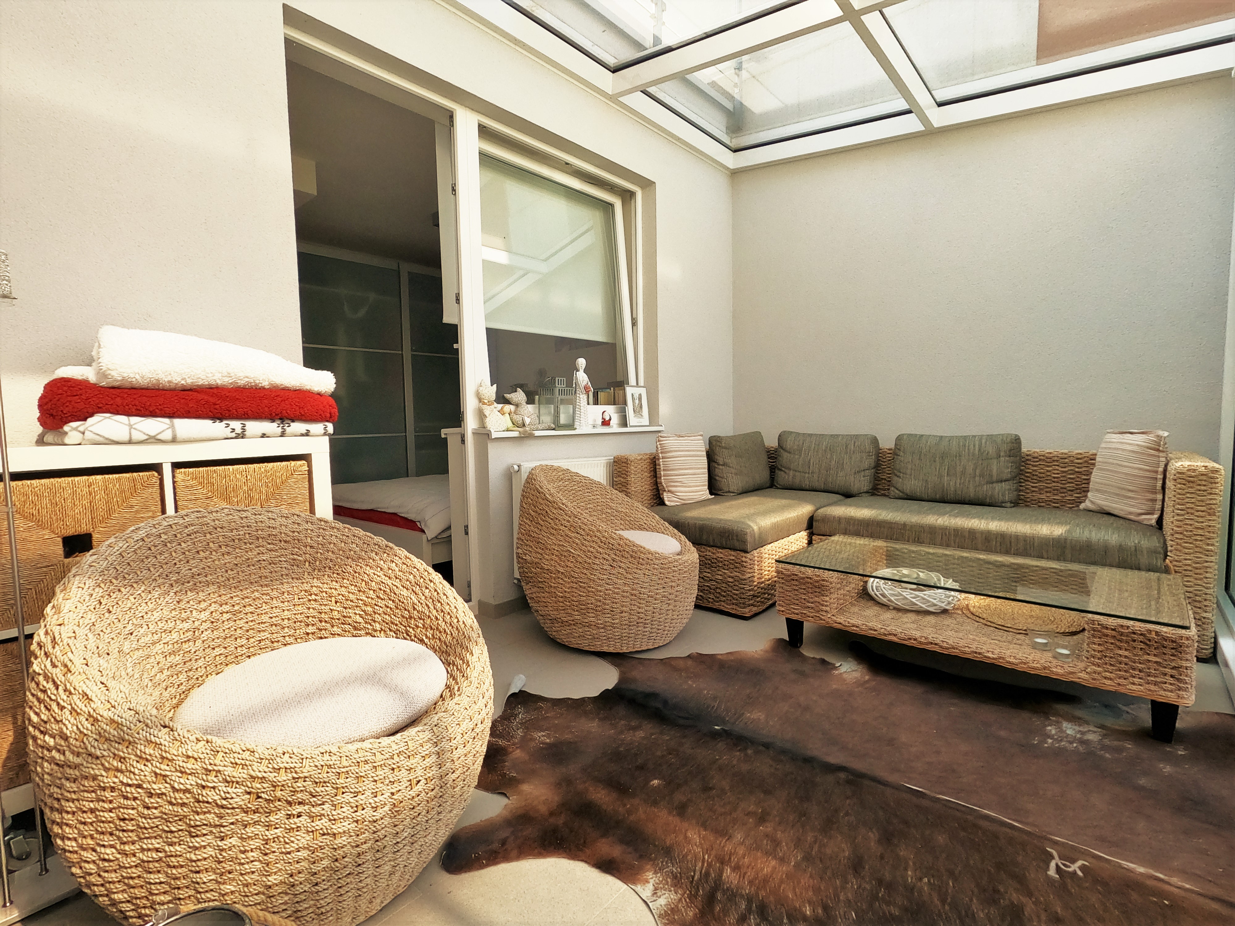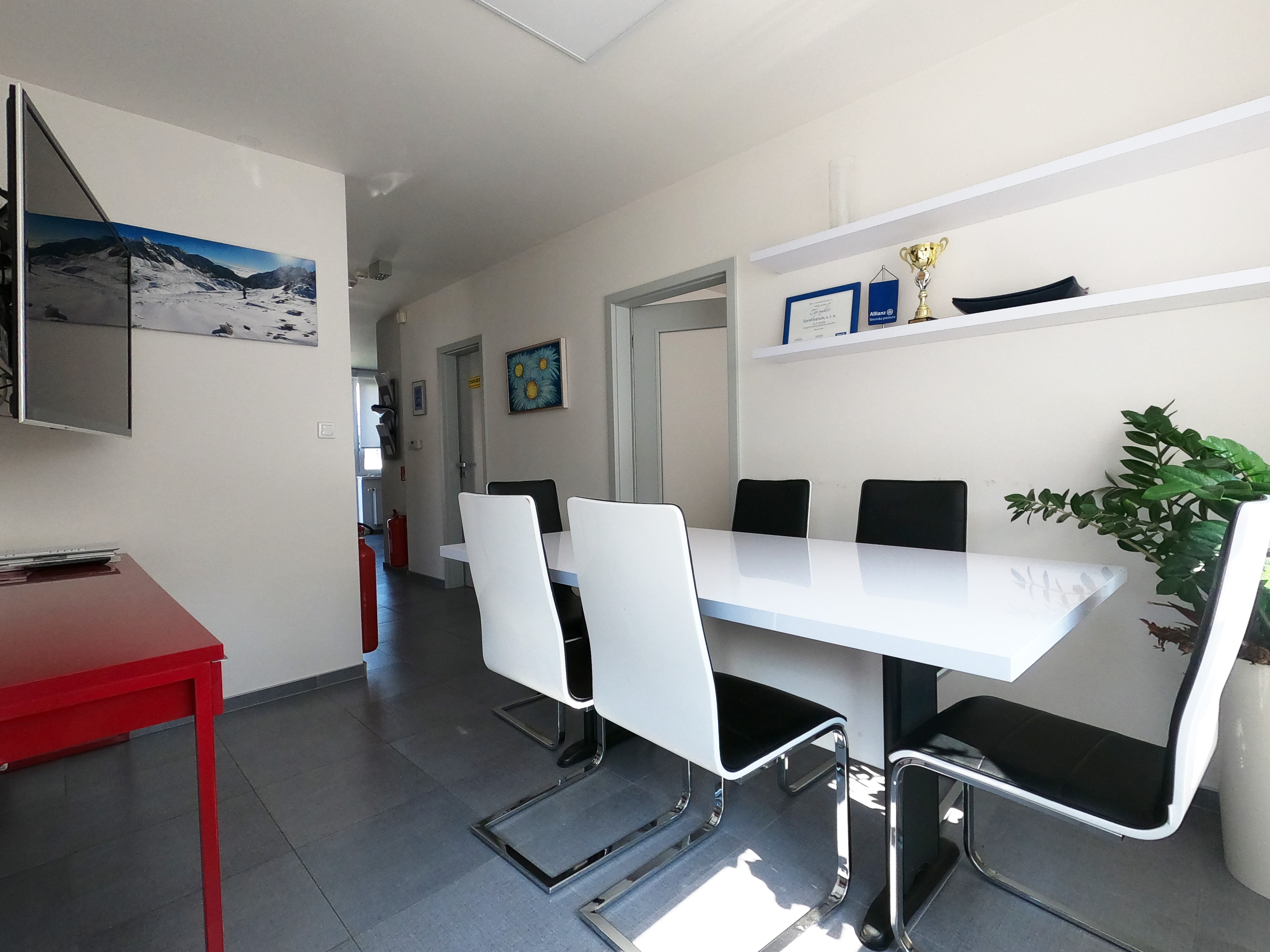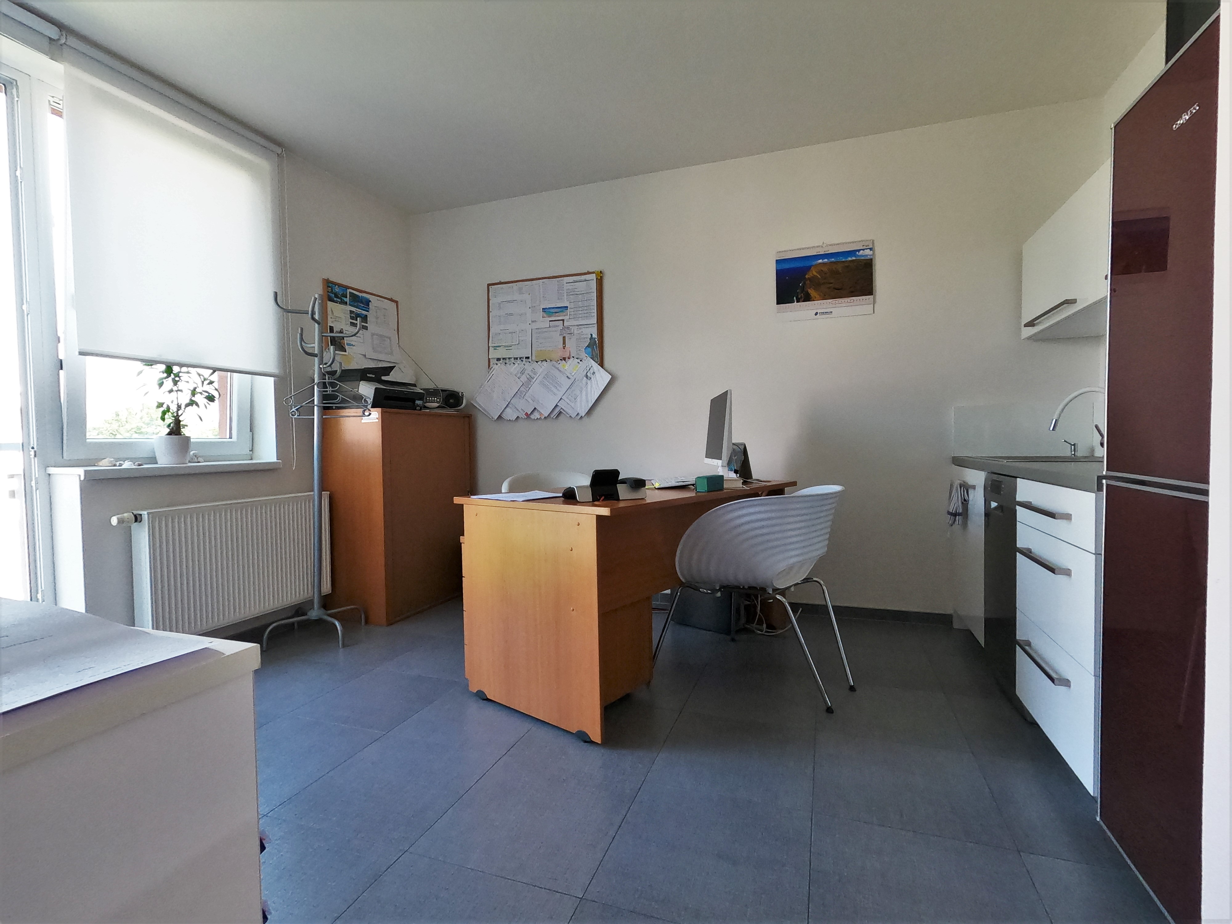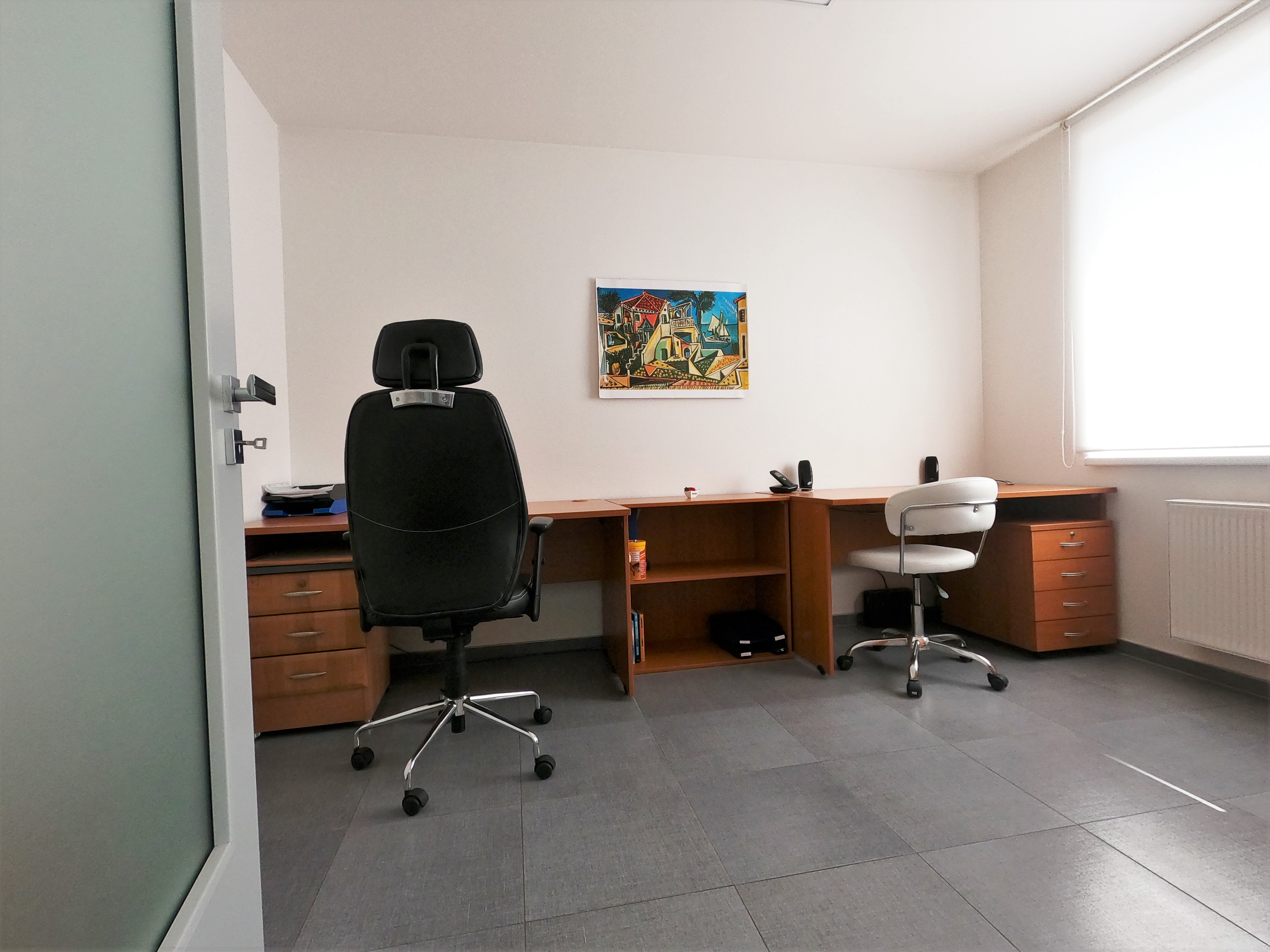 Vrchná časť je zariadená ako pracovná časť pozostávajúca z 2 miestností- kancelárií, zasadačky, wc a balkóna, samozrejme, že miestnosti sa dajú použiť aj ako 2 plnohodnotné hosťovské izby alebo decké izby. K nehnuteľnosti prislúchajú 3 parkovacie miesta a útulná záhrada.