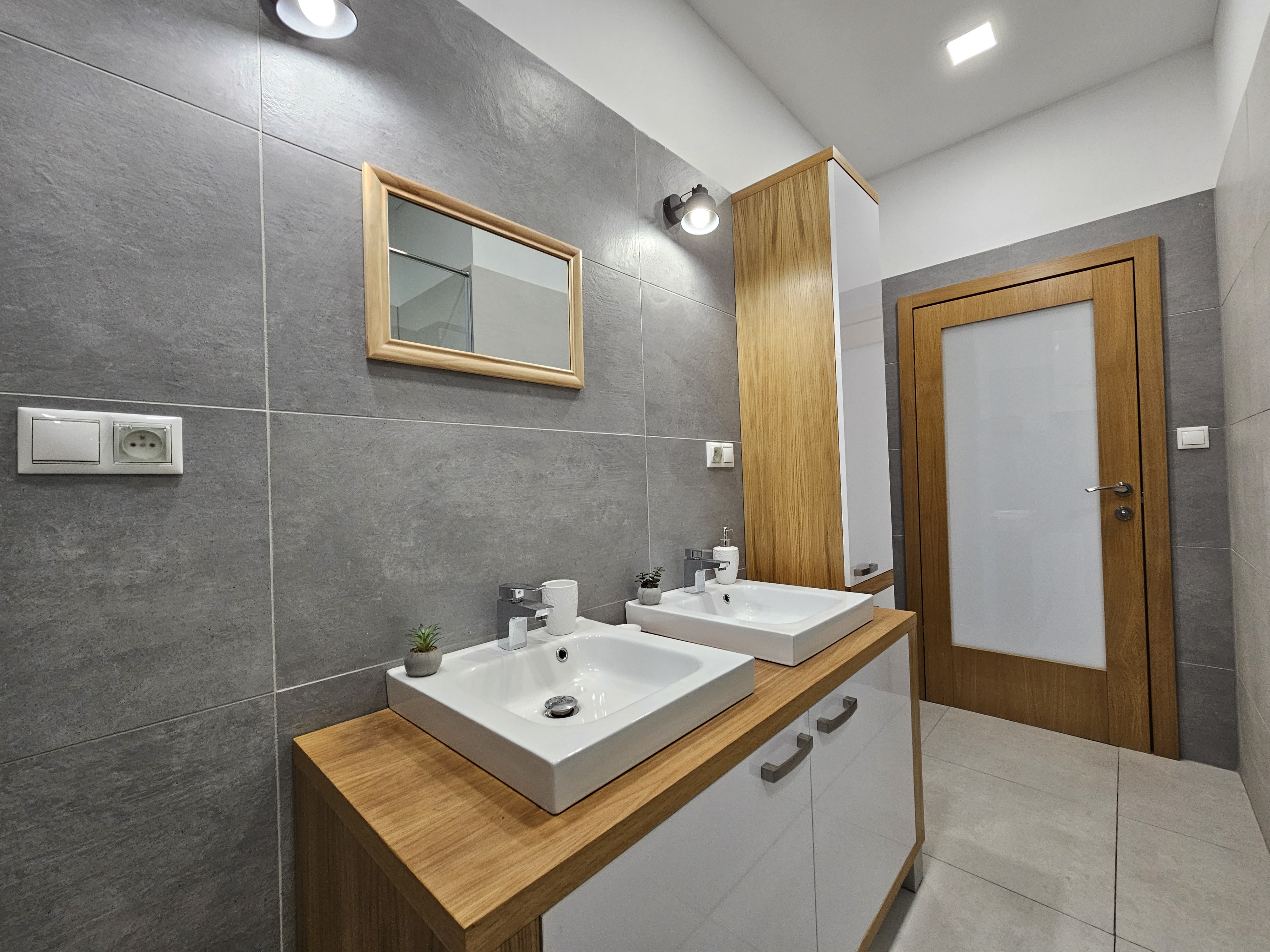 V kúpeľni vás čaká sprchový kút, umývadlo a automatická práčka. Samostatná toaleta je praktickým bonusom. Spálňa ponúka pokoj na oddych – manželská posteľ, nočné stolíky a dostatok úložného priestoru vytvárajú ideálne miesto na relax po dlhom dni.