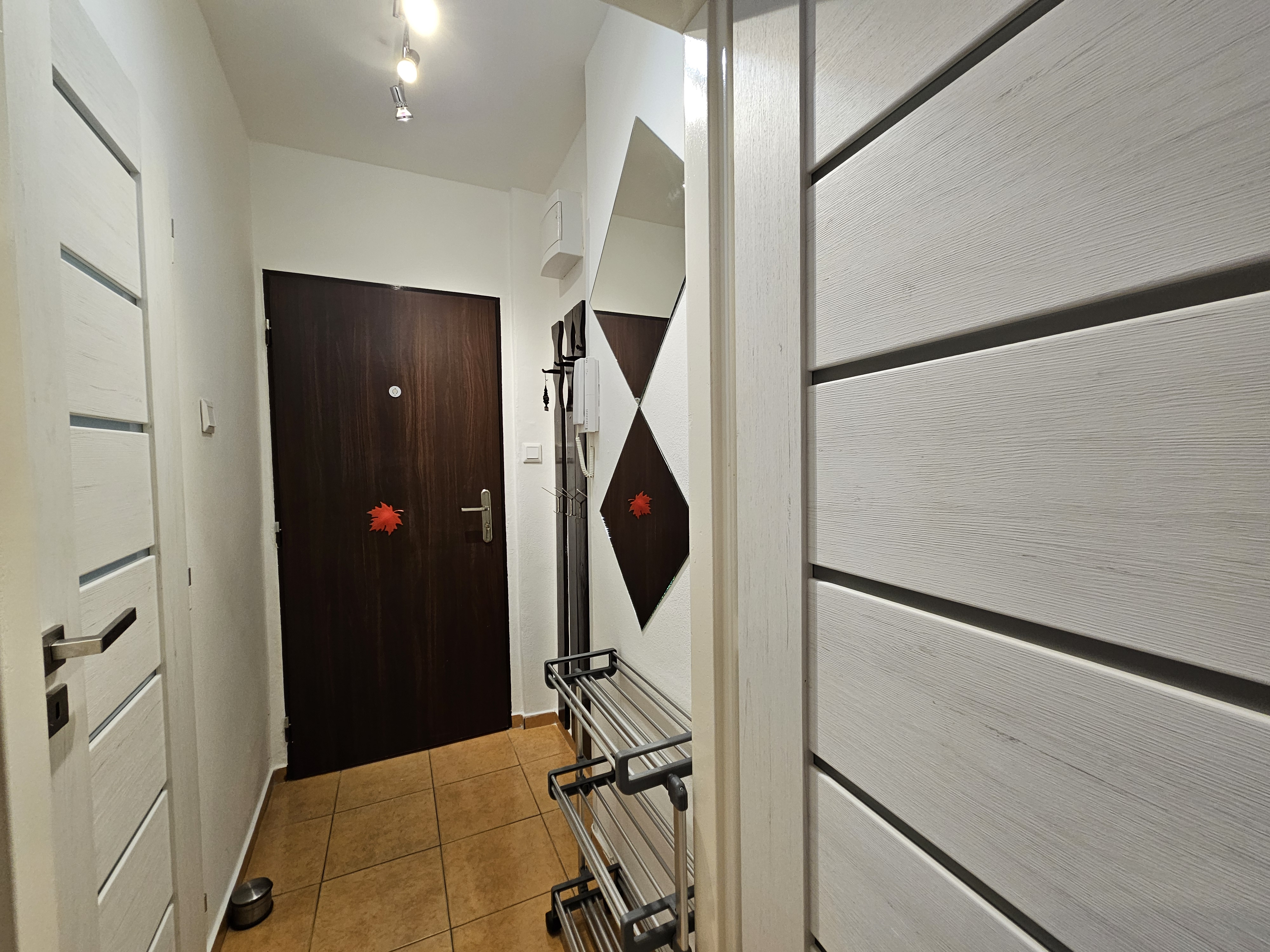 Byt je kompletne zariadený, vrátane kuchynskej linky a rozkladacieho gauča vhodného na každodenné používanie. Dispozične je riešený tak, aby poskytoval dostatok úložného priestoru.