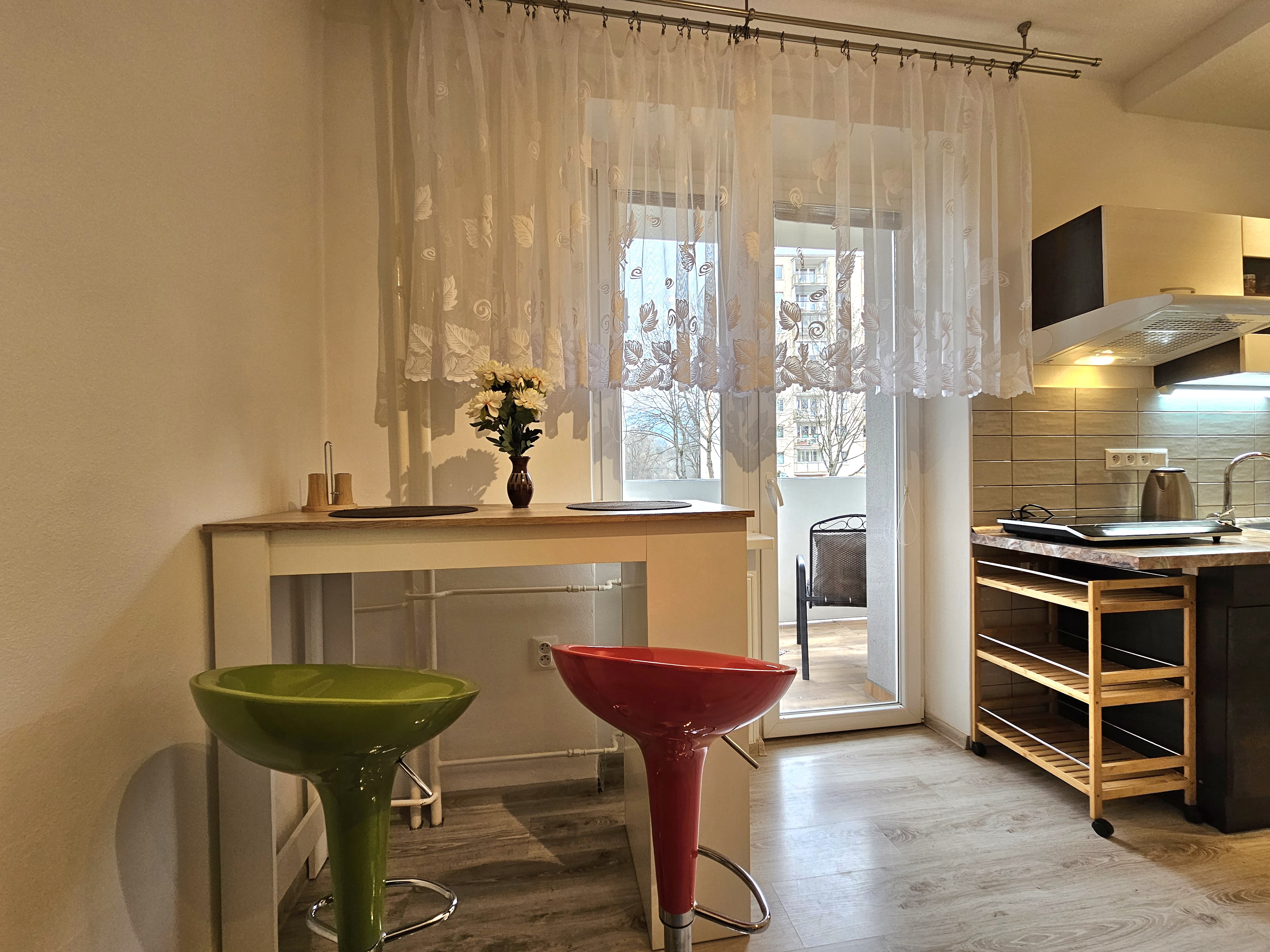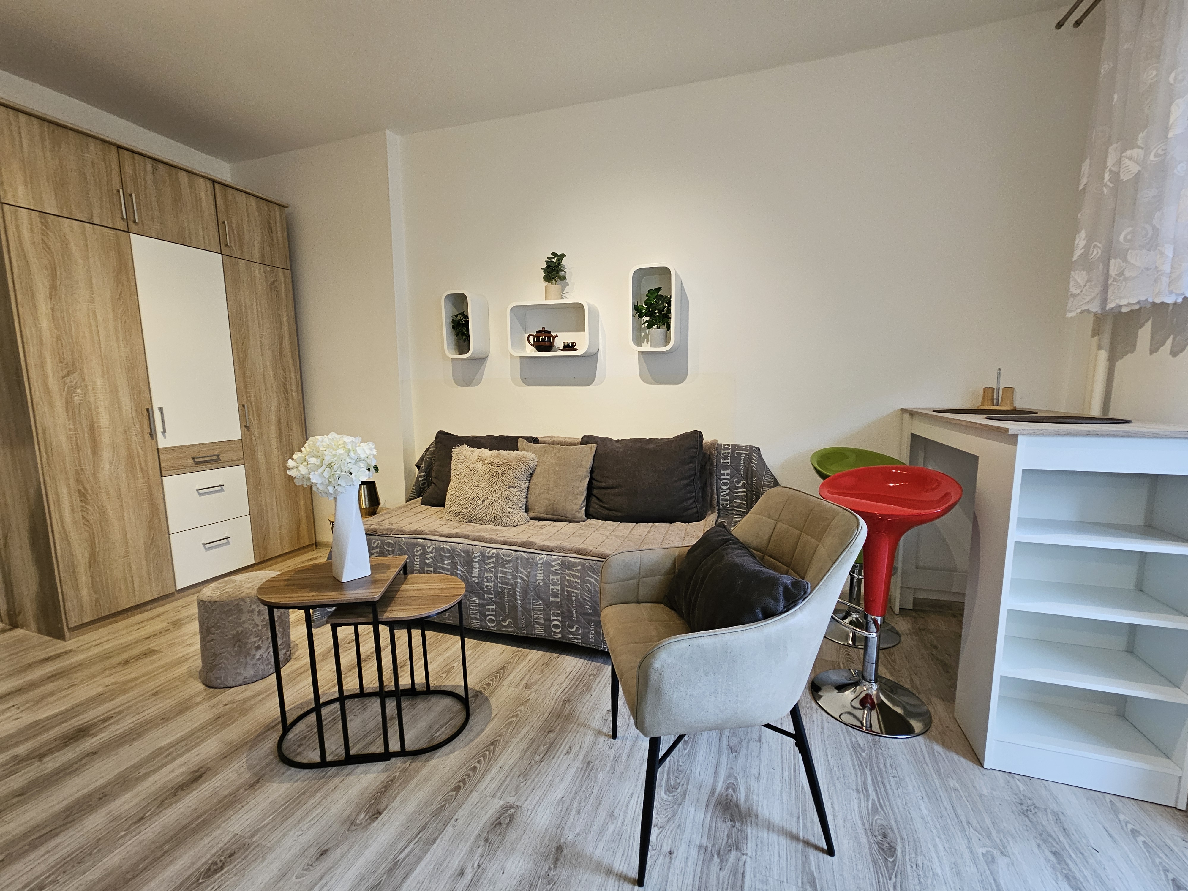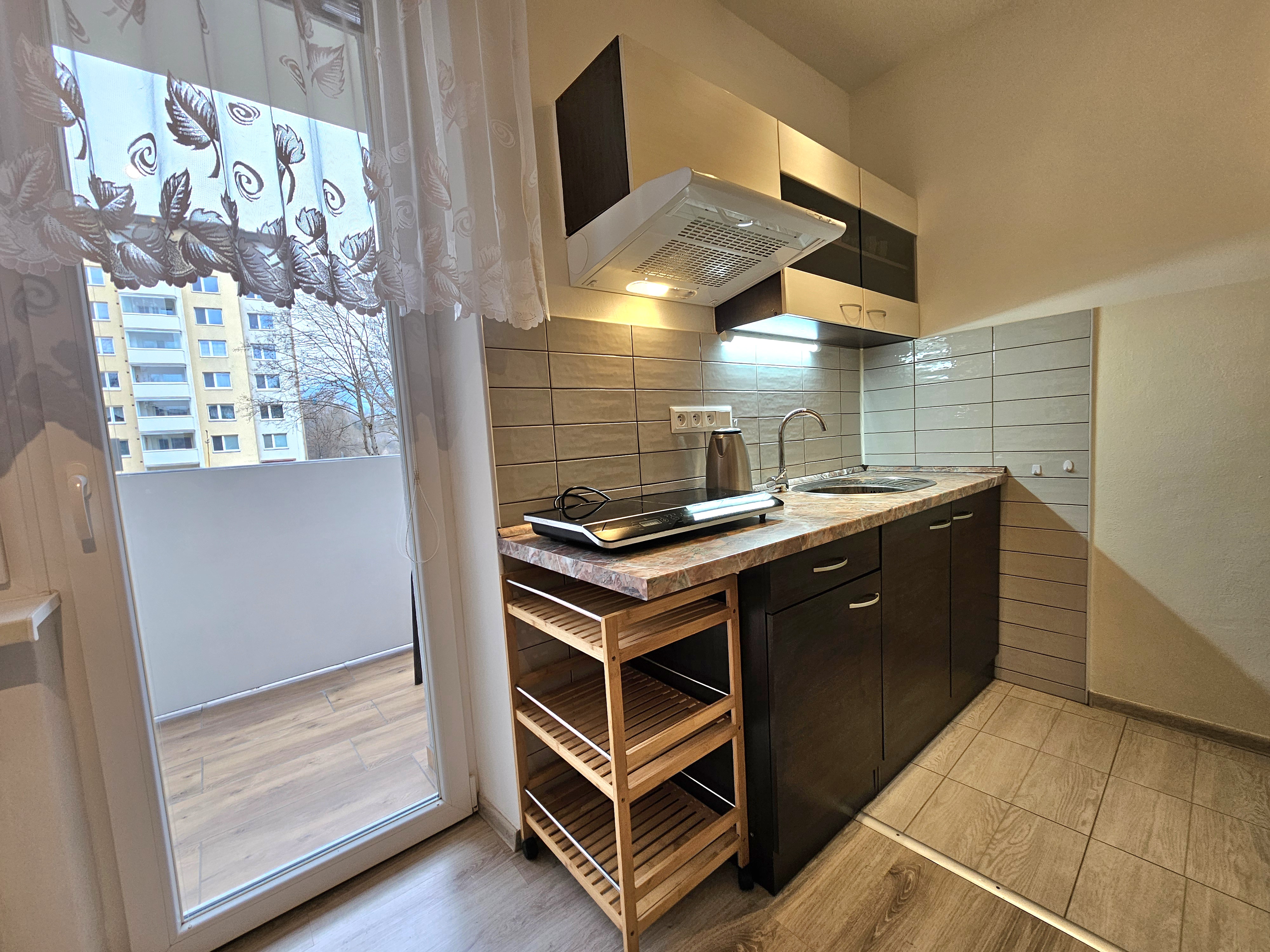 Garsónka sa nachádza na 1. podlaží zrekonštruovanej tehlovej bytovky. Má výmeru 28 m² a je orientovaná na južnú stranu s výhľadom do átria, čo zabezpečuje dostatok denného svetla a pokoja.