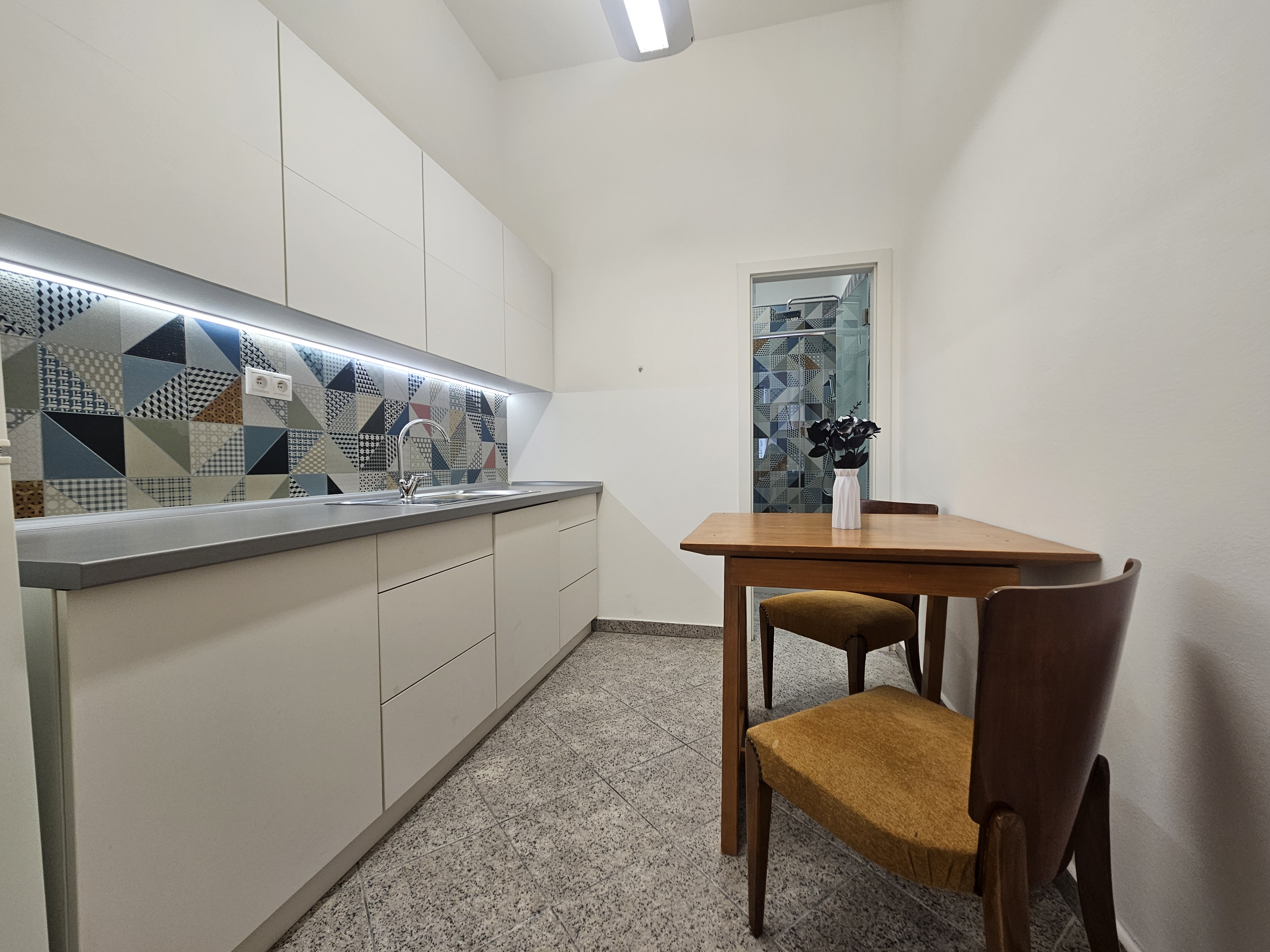 Byt sa nachádza v dome na pešej zóne, s výťahom a vysokými stropmi, ktoré dodávajú priestoru pocit vzdušnosti a otvorenosti. Denná časť je prepojená s kuchyňou a spálňa poskytuje pokoj a súkromie.