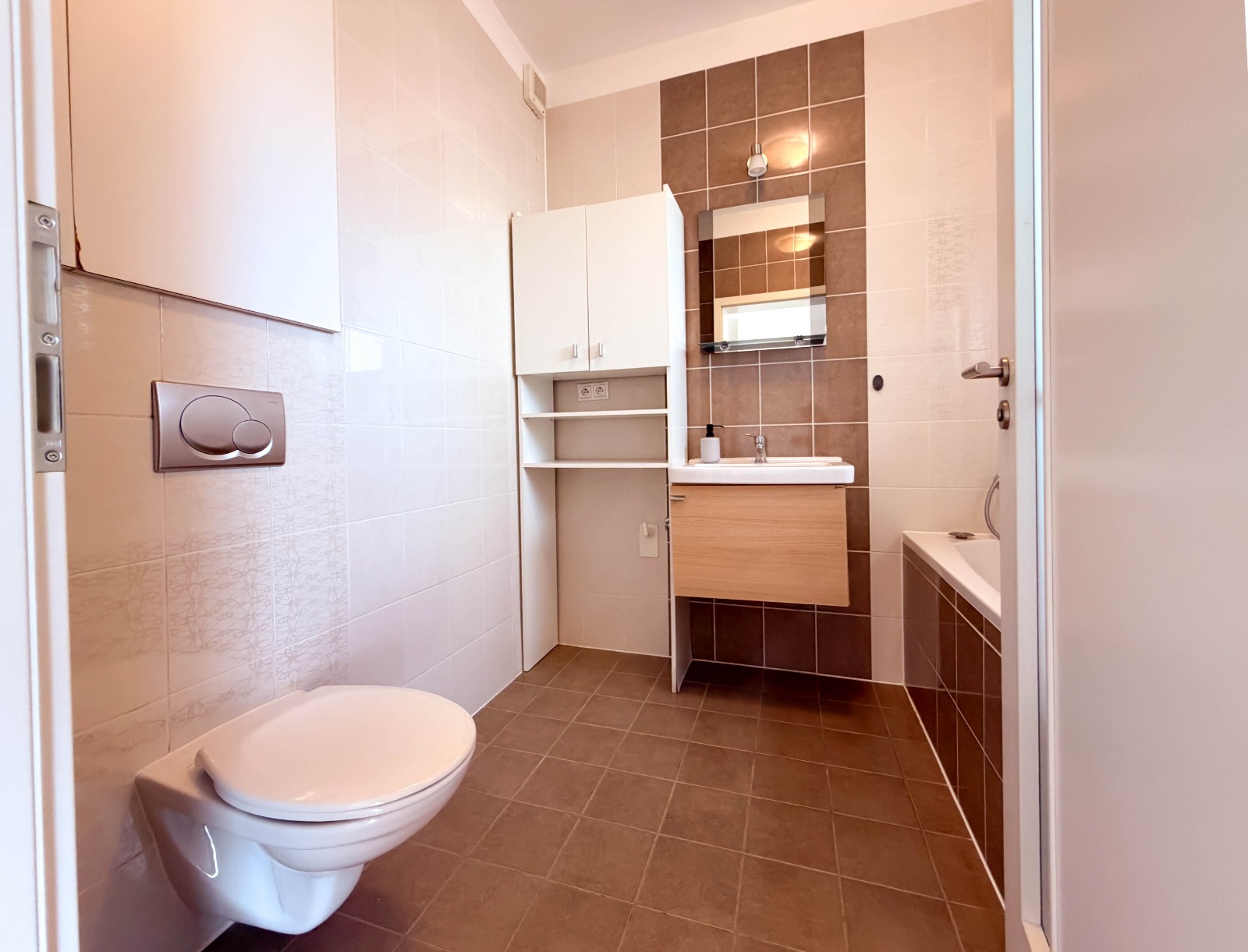 Byt sa nachádza v nižše časti komplexu a ponúka praktické dispozičné riešenie s dostatkom svetla a príjemnou atmosférou. Dispozícia pozostáva zo vstupnej chodby, samostatnej toalety, priestrannej obývačky prepojenej s kuchyňou, samostatnej spálne a kúpeľne s ďalšou toaletou. Veľkým benefitom je terasa, ktorá poskytuje ideálne miesto na rannú kávu alebo oddych po práci s krásnym výhľadom na bôrickú časť lesoparku.