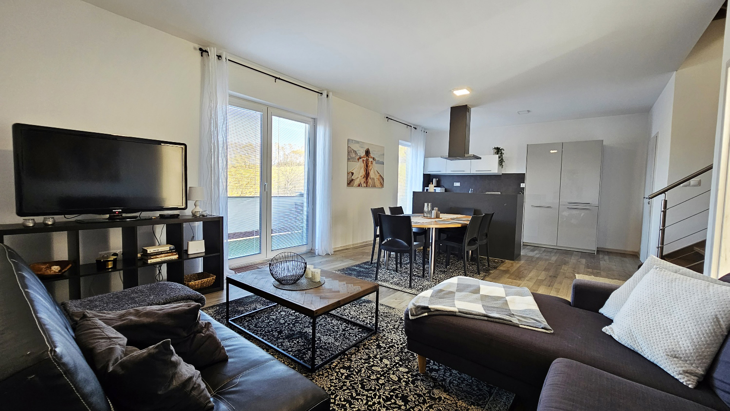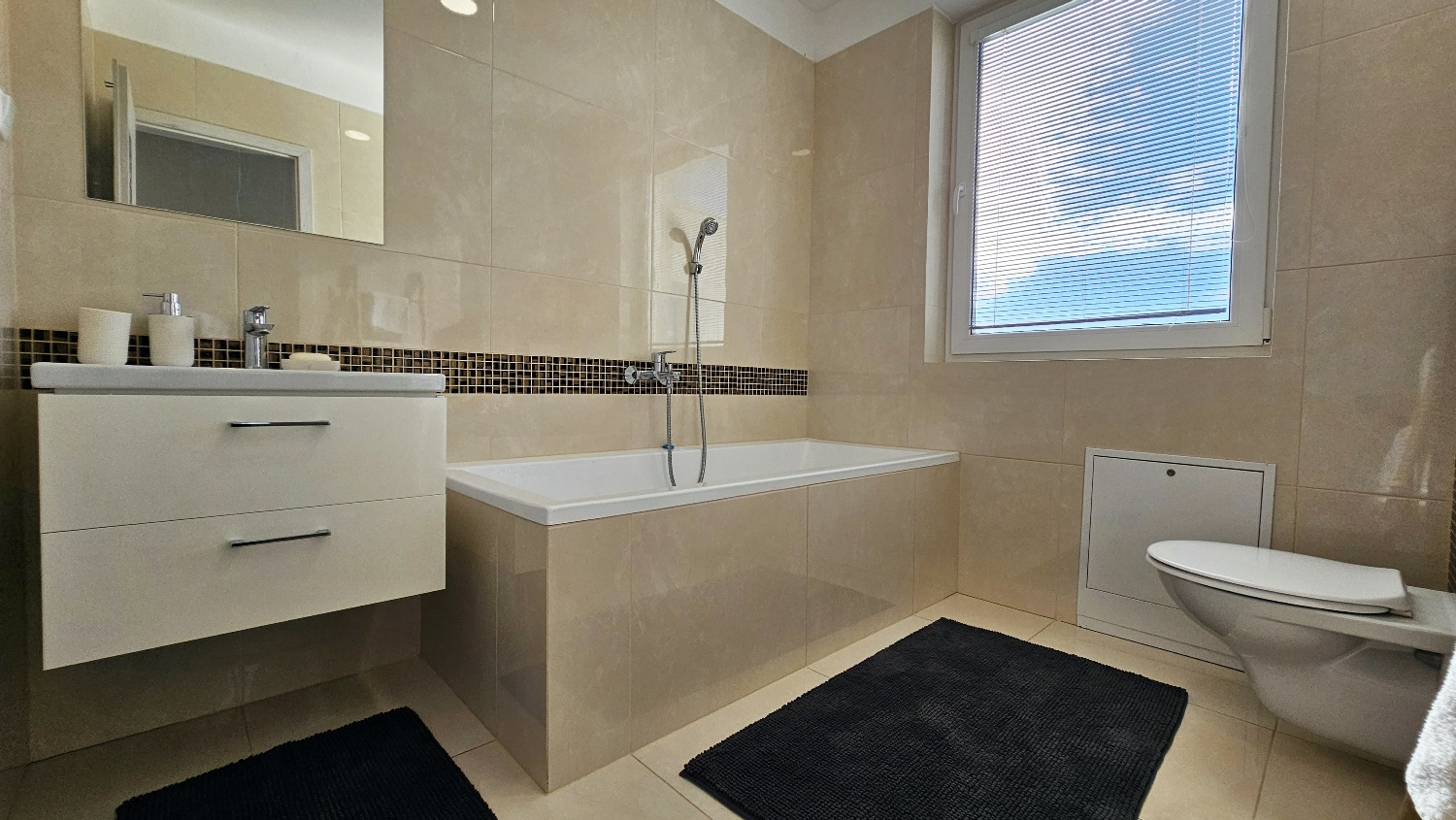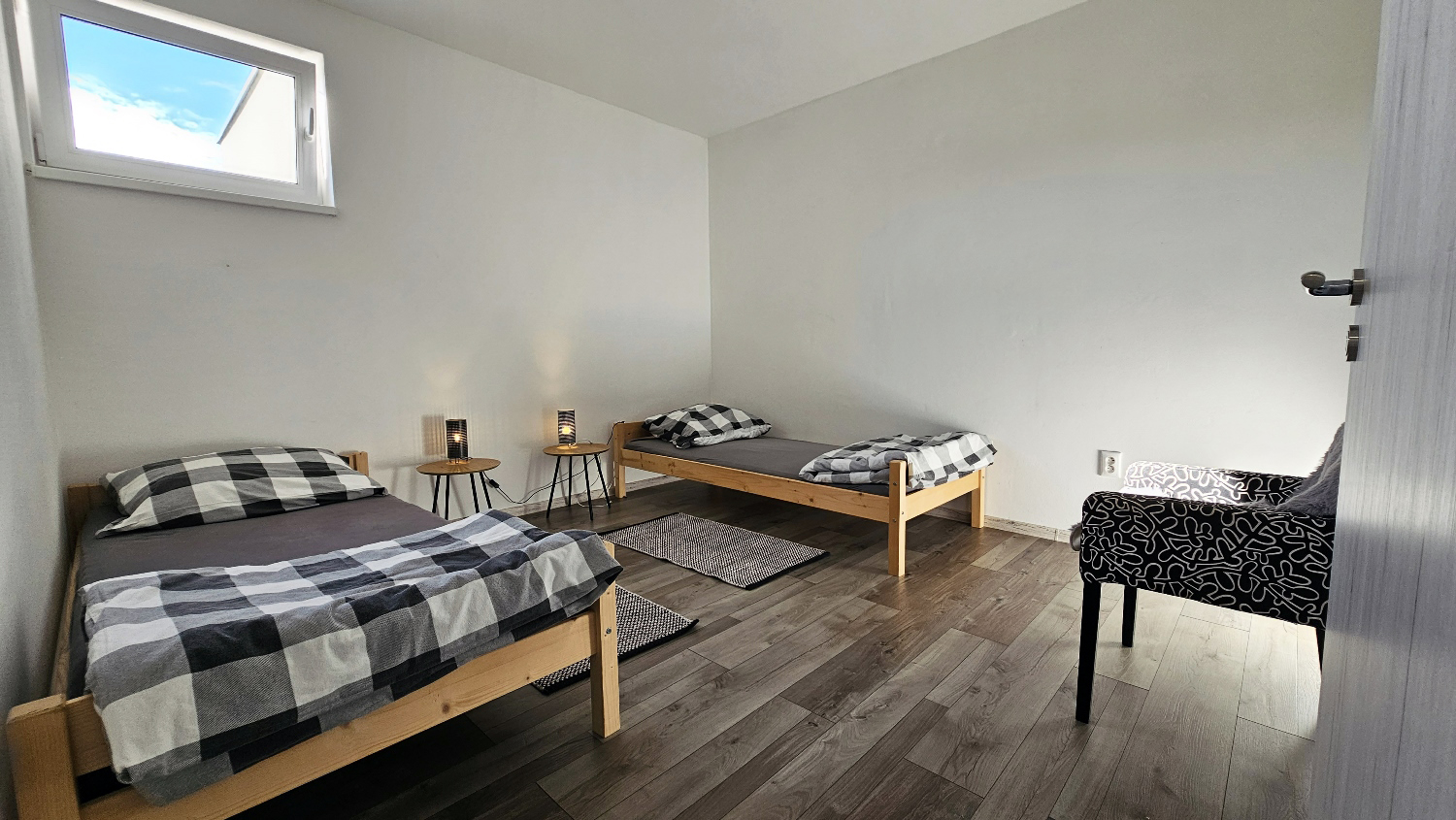 Nová stavba z roku 2020, podlahové kúrenie s termostatom, orientácia juhozápad – severovýchod = svetlo aj tieň, ako si želáte. Kuchyňa s kuchynským ostrovom: indukčná doska s digestorom, elektrická rúra, chladnička s mrazničkou a umývačka Electrolux, mikrovlnka a varná kanvica. Ďalšie spotrebiče: práčka Candy v kúpeľni, veľkoplošný TV Philips.